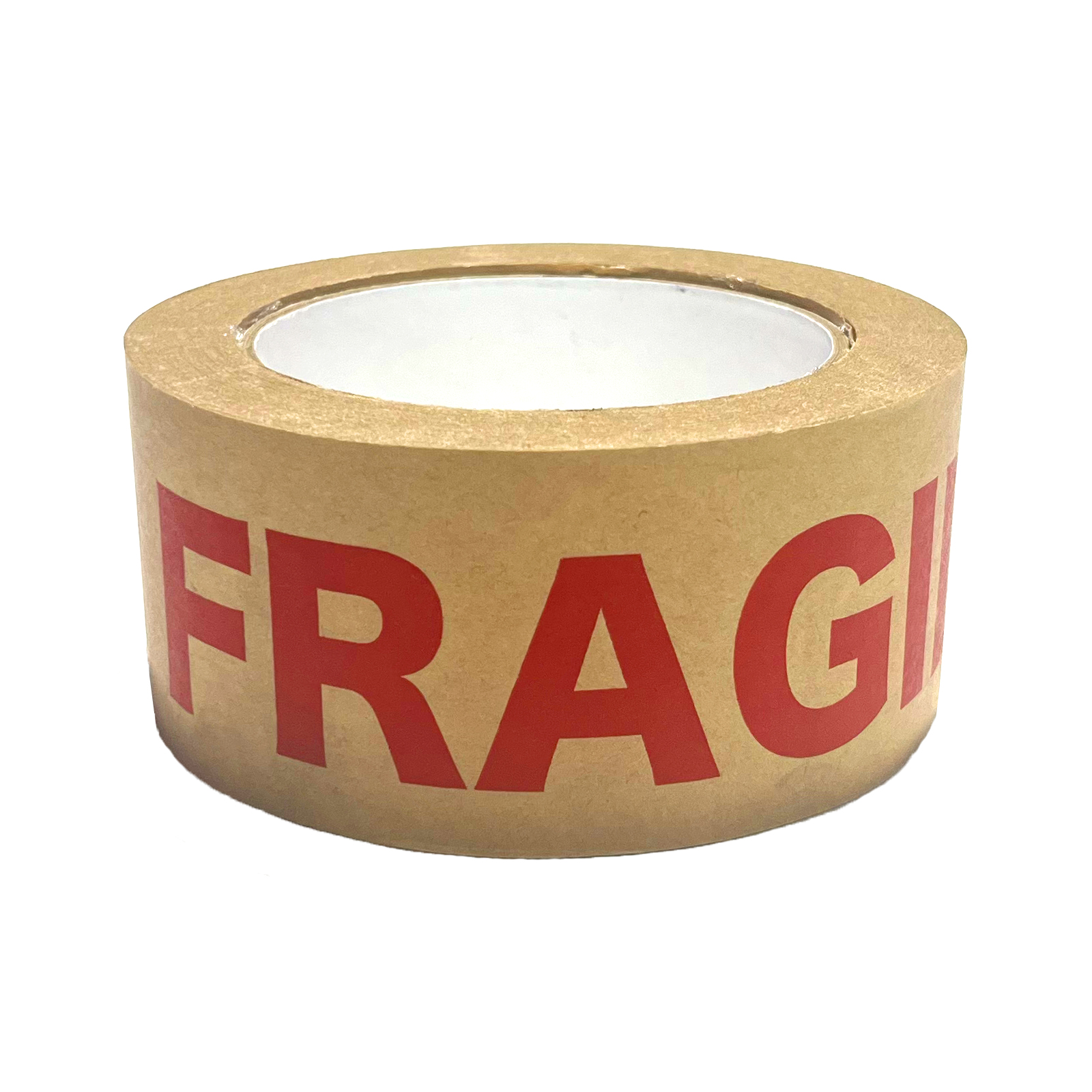Self-Adhesive Paper Tape Printed 'Fragile' in Red - 50mm x 50M