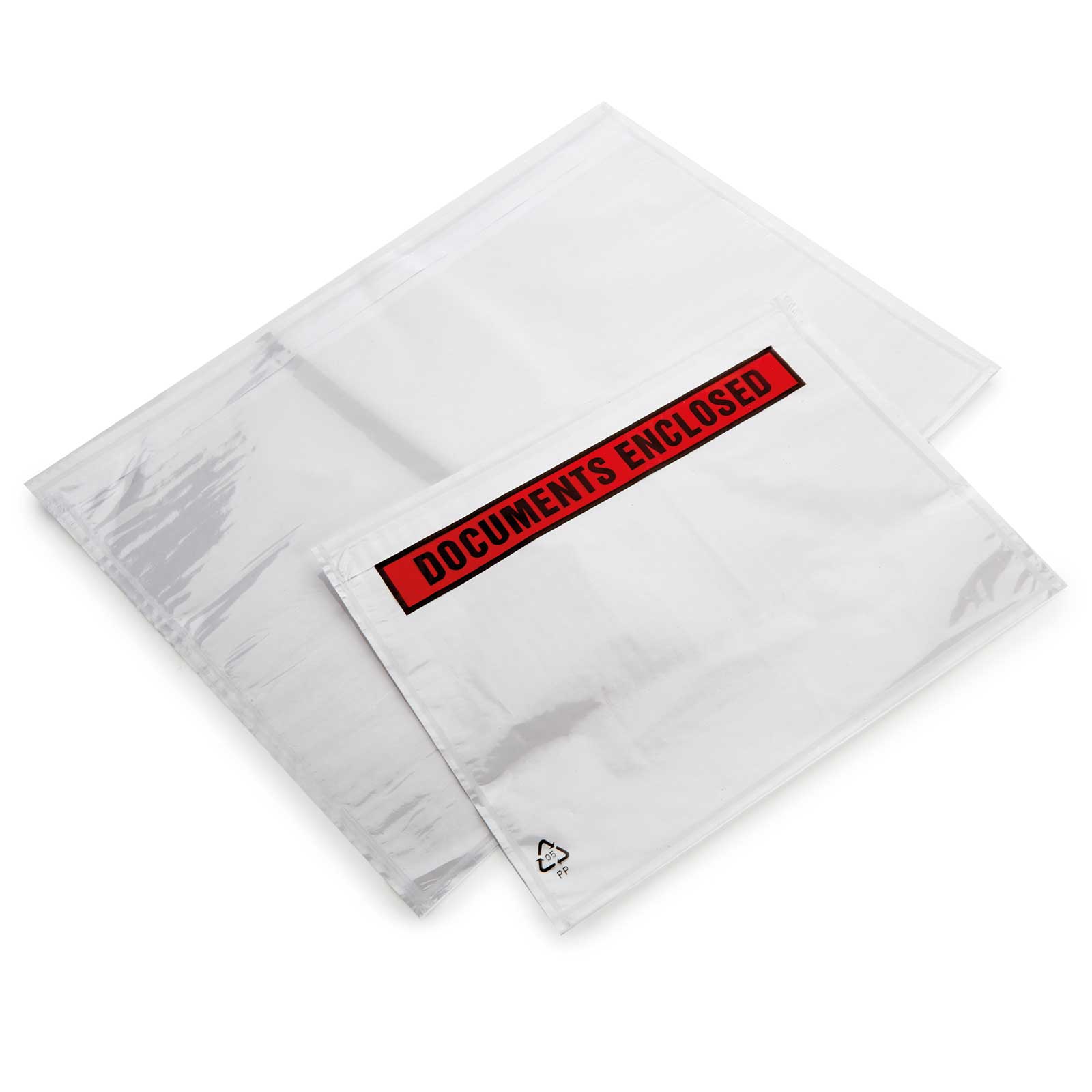 Keep important documents clean and safe with specialist ‘documents enclosed’ wallets. These plastic document holders have a self-adhesive back which can be secured to packages. They’re available in 5 sizes with either ‘Documents Enclosed’ printed in black on red or unprinted.