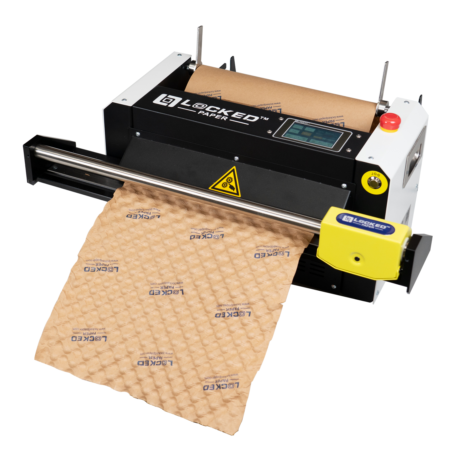Flat kraft paper is fed through the machine which turns the paper into effective cushioning and protection at the point of despatch.