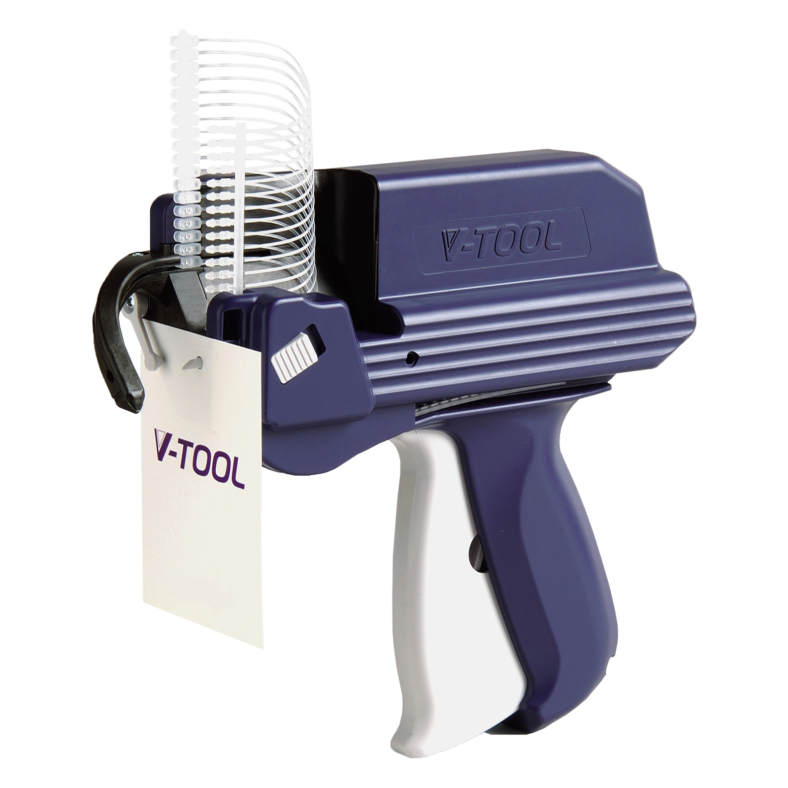 The V-Tool tagging gun quickly applies loop-fastened tags to belts, handbags, wallets, sunglasses, sporting goods, kitchen utensils and more.