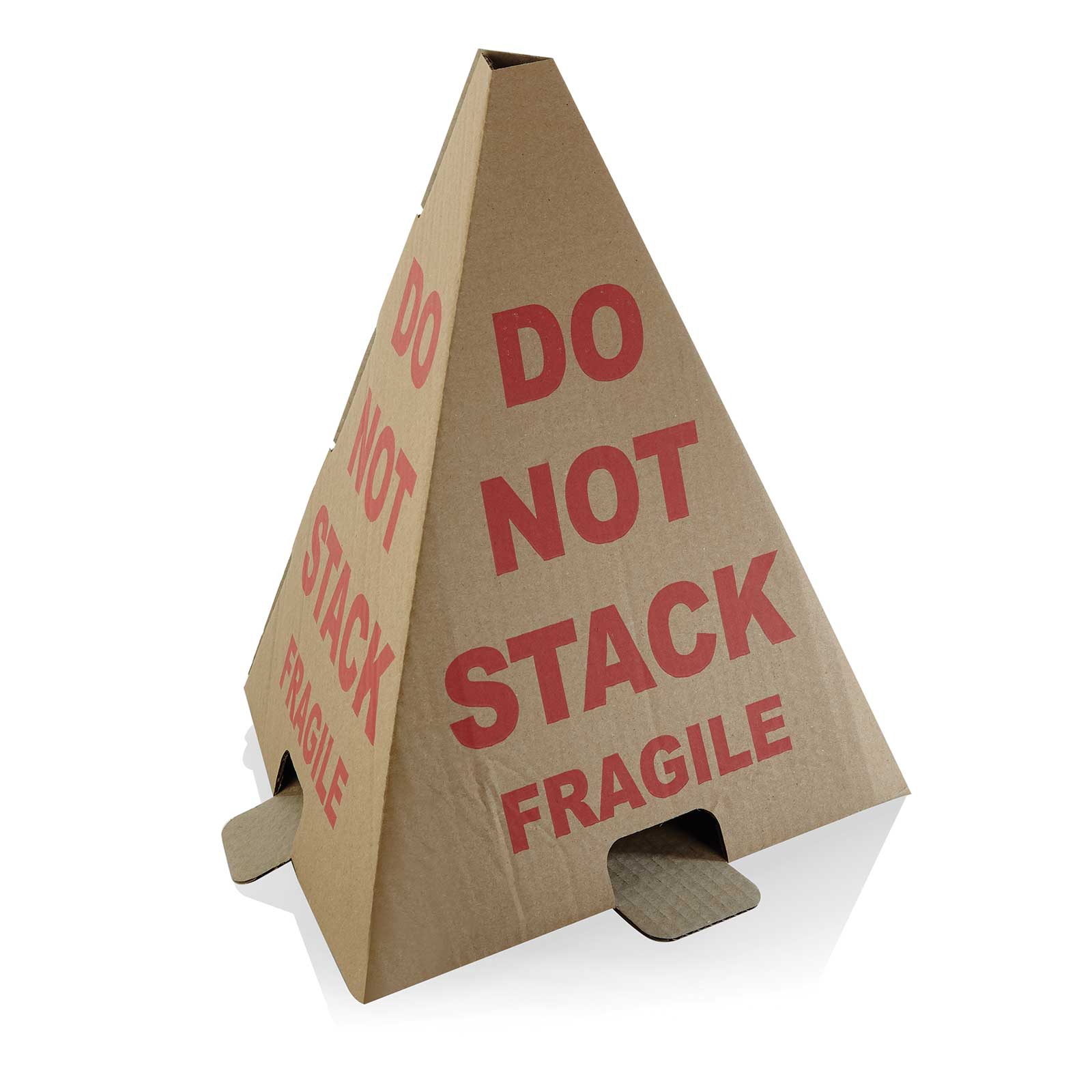 Strap or tape these die -cut pallet cones to the top of a pallet to prevent pallet stacking when pallets are packed with fragile or breakable goods.