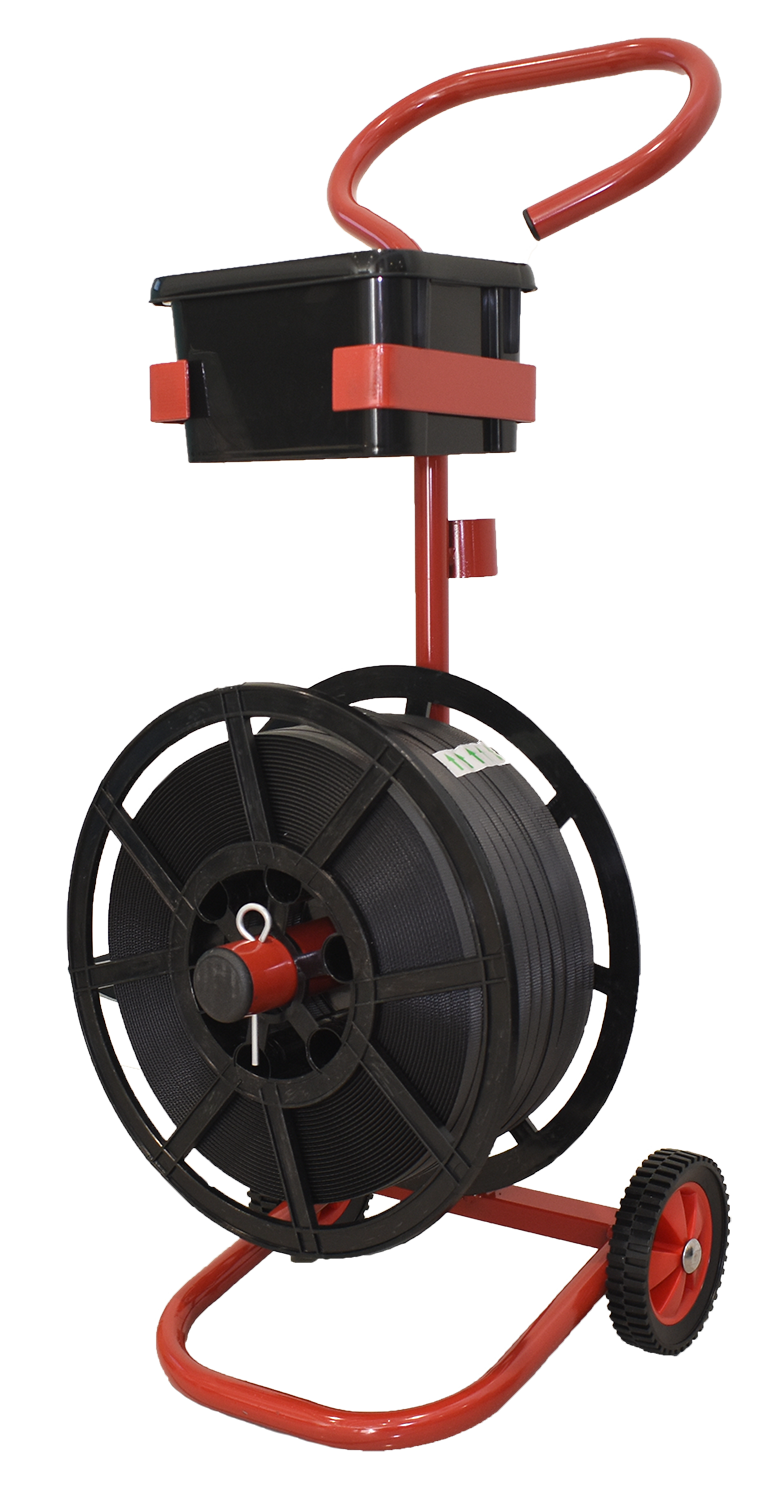 Compatible with PP plastic hand strapping reels, this dispenser is mobile, making it easy to move your strapping reel around your warehouse to any production area.