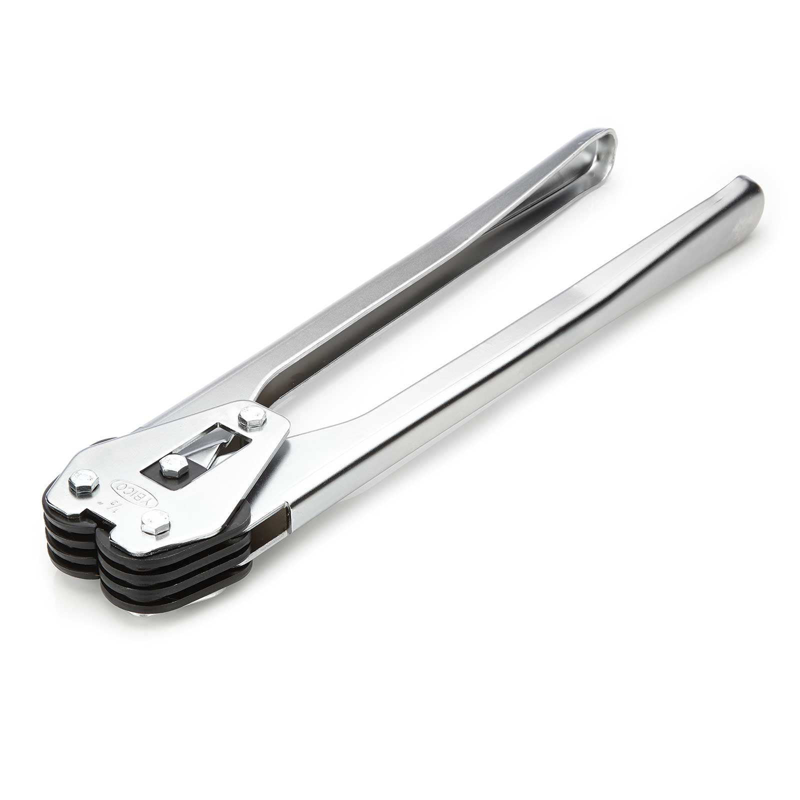 Use the tensioners to secure polyester or polypropylene strapping to a load and use the sealers to apply metal seals to plastic strapping.